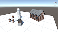A simple unity scene using the monument model (now with bevel, subdivision surfaces and decimate) built previously, along with barrel (not mine!) prefabs and some models imported from the asset store...